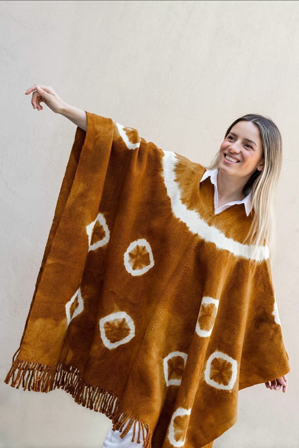 Poncho Nepal Adobe. Poncho hecho en hilado de oveja, tejido al telar criollo. teñido con tintes naturales.