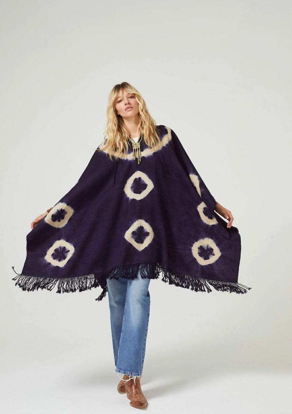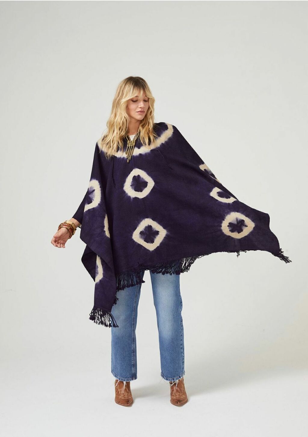 Poncho Nepal Blue. Poncho hecho en hilado de oveja, tejido al telar criollo. teñido con tintes naturales.